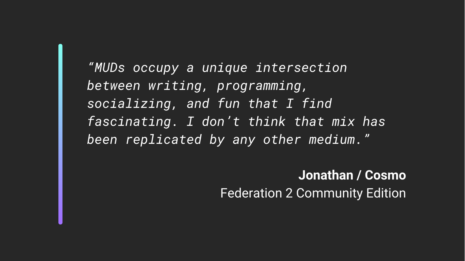 Before we wrapped up, Jonathan offered up some straightforward advice for anyone thinking about starting a MUD of their own.