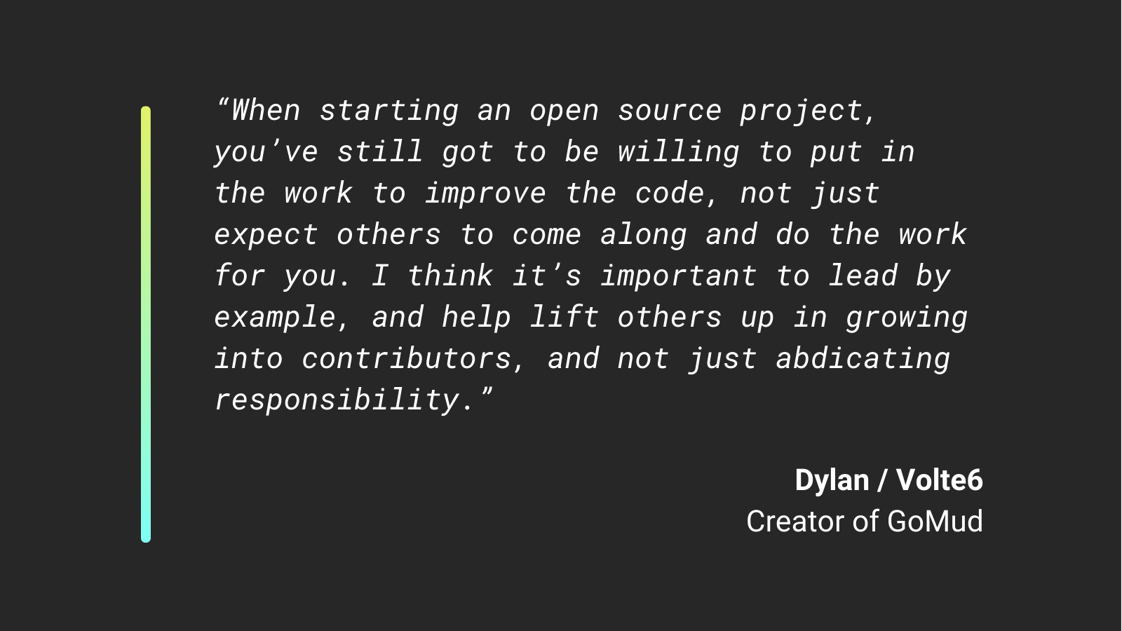 - Lead by example. Releasing a codebase publicly means continuing to maintain and improve it yourself. Dylan emphasizes that running an open-source project isn’t about handing off tasks -it’s about demonstrating commitment and helping others step up as contributors.