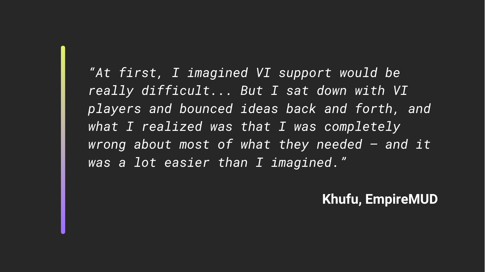 Ultimately, you can’t address issues you don’t know about, which is why feedback is invaluable for making your game more accessible and enjoyable for a global audience.