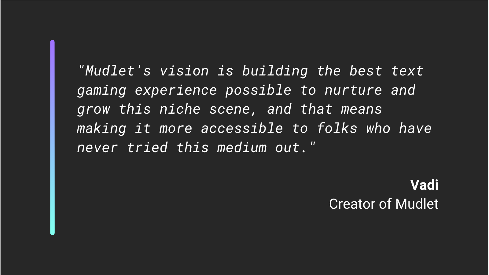 And where other people see MUDs as a dying genre, Vadi sees opportunities: