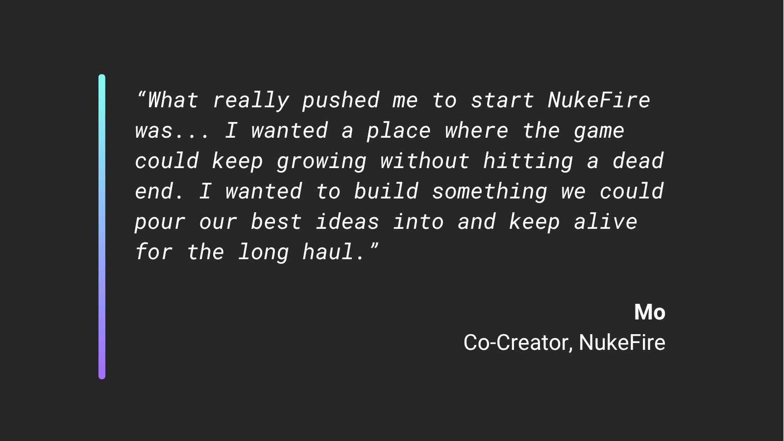 NukeFire has seen an uptick in new player activity over the past few months, which has shaped a lot of the work Mo has been doing.