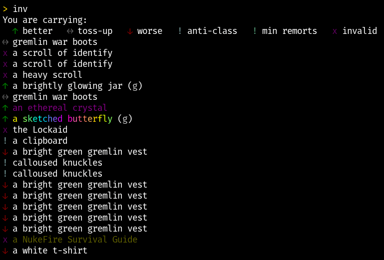 Another QoL thing I like about NukeFire: the ability to compare your equipment with possible upgrades in your inventory – automatically.