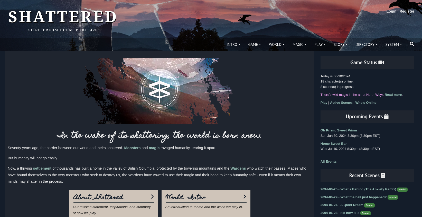 Spirit Lake was Tat’s first game on the AresMUSH platform, and it ran for just over three years before wrapping up.