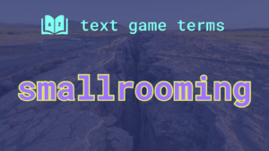 As text-based roleplaying games rely heavily on written descriptions to establish scene and setting, maintaining spatial and environmental realism is important for immersion. The term “smallrooming” helps players communicate about and improve the realism and consistency of their interactive storytelling.