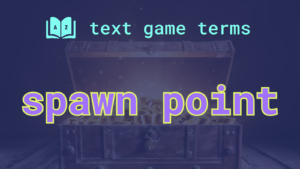 In text-based roleplaying games (RPGs), a spawn point is a designated location where characters, creatures, or items appear. This could be where new characters start their journey or where they reappear after being defeated.